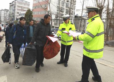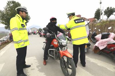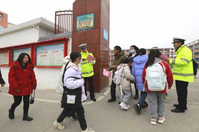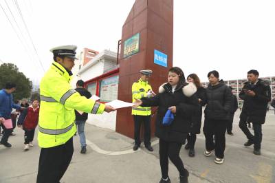 2月26日是新学期开学第一天,湖北省竹山县公安局交警二中队民警和辅警在宝丰镇辖区学校门口例行执勤,开展护校安园行动。同时,为送学生报名的家长发放《遵守交规 安全出行》宣传资料,提高师生、家长的交通安全意识。