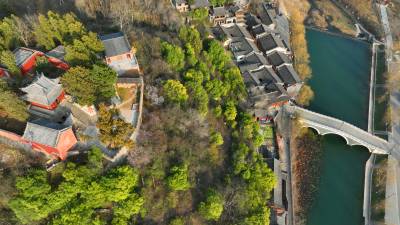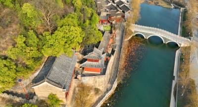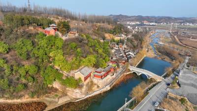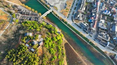 2024年3月3日,航拍绿水青山环抱的十堰市房县军店镇下店子古村落。