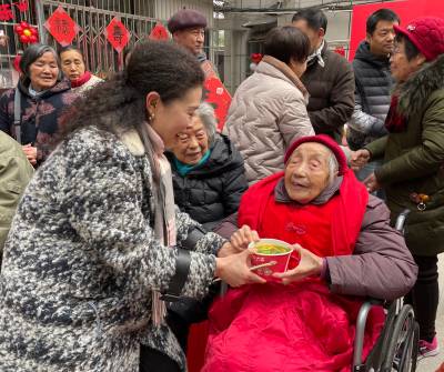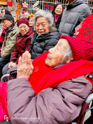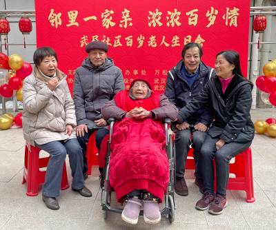 为进一步弘扬尊老爱幼的中华民族传统美德,提升社区凝聚力,营造尊老敬老的良好社区氛围,3月1日上午,武汉市江汉区万松街道武展社区在14号院小广场举办“邻里一家亲 浓浓百岁情”百岁老人生日会,社区居民、志愿者、社团组织,以及武商超市超级生活馆、武汉市第六十八中学、楠山康养、武汉城建中央云城项目部等辖区单位、企业代表齐聚一堂,争当新时代的雷锋,见行动,共同为辖区老人曹瑞珊奶奶庆贺百岁生日。 曹奶奶一生平凡朴素,宽厚善良,如今已走过了一个世纪的年华,亲历了14号院的变化,见证了武展社区的变迁,是社区的骄傲和瑰宝。而早在10年前,辖区单位武商超市超级生活馆就跟曹奶奶结下了不解之缘。在三任店长的带领下,他们十年如一日地结对帮扶曹奶奶,送温暖献爱心,用实际行动践行企业社会责任的同时也让尊老敬老的中华传统美德薪火相传。在现场,武商超市超级生活馆店长高璇带领党员志愿者团队向曹奶奶送上生日祝福,并表示将继续为社区的高龄老人提供各类志愿服务,关心关爱辖区老人。 此时此景,曹奶奶的家人们心情也十分激动,小儿子作为家属代表,表达了对社区和辖区爱心企业的感谢。 一首由武汉市第六十八中学的学生们带来的合唱《让世界充满爱》正式拉开了生日会演出环节的序幕。 “武展社区幸福多,春风拂柳舞婆娑。人人皆活一百岁,莫负当代好生活!”辖区高龄老人汪振文用一首原创诗词给老寿星和社区居民送来真挚的祝福,赢得现场阵阵掌声。 在中国古代,龙是祥瑞的象征,能够带来好运和丰收,今年恰逢农历甲辰龙年。社区老友艺术团带来欢快喜庆的舞蹈《龙船调》,让现场气氛更加热烈。 文艺演出结束后,楠山康养居家养老服务中心代表为曹奶奶献上鲜花;辖区书法达人苏友菊、李玉成将提前准备好的书法作品赠送给奶奶,祝福百岁寿星“福如东海长流水,寿比南山不老松”。 当熟悉的生日歌旋律响起,曹奶奶许下了她的百岁生日愿望——愿祖国越来越富强,愿大家幸福安康!最后,大家一起品尝生日蛋糕和长寿面,共享这欢乐的时光。