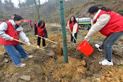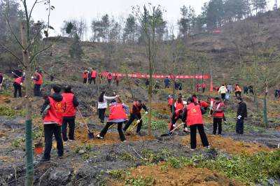 3月5日,竹山县组织机关干部、群众和社团志愿者共350人,到潘口乡鱼岭村鱼岭工业园开展“绿满竹山,你我同行”春季义务植树活动,当天栽植香樟、窝竹3800棵。