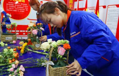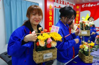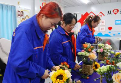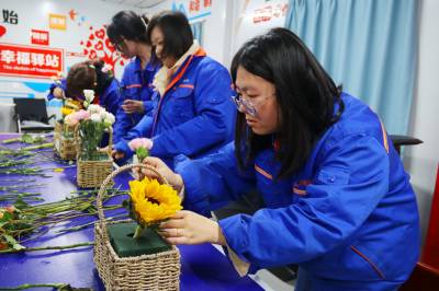 插花活动现场欢声笑语,女职工们有的拿着剪刀修花枝,有的把修好的一枝枝鲜花插在花蓝里,看谁动作又快又标准。大家动起来认真而又轻松,纷纷拿出自己的绝活,展现自己最美的一面。“第一次参加插花活动,和姐妹们在一起插花,开开心心的过“三八”节,感觉很有意义”。项目部女职工杨湘丽说。