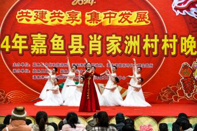 3月6日,春季“村晚”示范活动,在嘉鱼潘家湾镇肖家洲村激情上演。