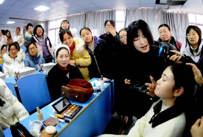 活动中,非凡婚纱摄影首席画妆师现场给年轻教师洁面、护肤、化妆,细心讲述美妆知识,希望女教师们学会职业装束,以美好形象充满朝气地工作、生活艾尔;爱尔眼科医生热忱地嘱托女教师们要爱护眼睛,教女教师们做眼保健操,传授护眼知识,祝愿大家用明亮美丽的眼睛,饱览世间芳华;跨世纪幼儿园教师引领示范了坐姿、站姿、走路等形体知识,女教师们跟着练习,她们笔挺端庄、英姿飒爽,赢得观众阵阵喝彩。