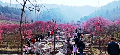 3月10日,笔者在十堰市秦巴生态植物园游园时看到,这里园内各色桃花盛开,春花烂漫,游人如织,陶醉花海。