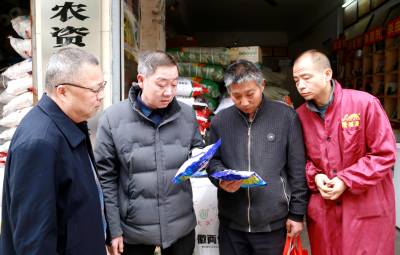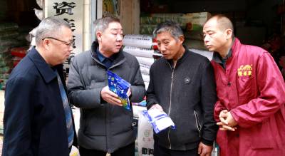 3月13日,安陆市府城办事处益农农资部,办事处农艺师陈国平(左二)在向购种农民传授杂交水稻的栽培技术。据悉,该办事处6个门市部已购回优质中稻种30万公斤,各类农药30吨,有机复合肥6000吨,为春耕生产提供强有力的物质保障。