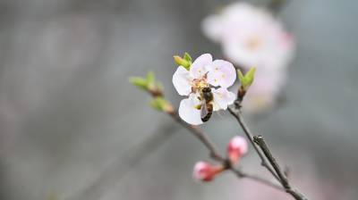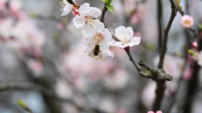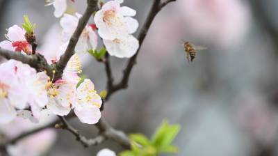 古人以杏象征幸福。因为杏与“幸”谐音,表示“有幸”,杏与花瓶表示“祝您高中”,同时因为杏花非常美丽,常用以象征美丽的少女;杏仁则比作美女的眼睛,俗语常说“柳叶眉,杏仁眼。” 杏花是烂漫和自由的象征 ;杏花薄粉轻红象征着春意盎然。如“春色满园关不住一枝红杏出墙来”。 杏花同时象征爱情 。在南水北调中线工程核心水源地的湖北省十堰市郧阳区地处北纬31度,盛产杏、桃、樱桃、梅、李等各种小水果,一到春节,繁花似锦,美不胜收。2024年3月13日,地处汉江边的湖北省十堰市郧阳区柳陂镇辽瓦村的杏花灿烂绽放,一只蜜蜂飞舞在花丛中。视界网王涛摄