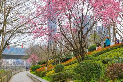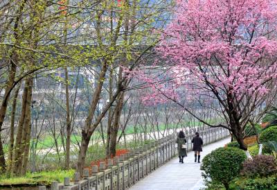 湖北十堰:书香满园春意浓 樱满枝头花正好 校园为民众开放赏花