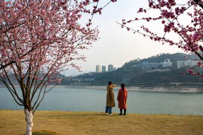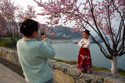 湖北十堰:书香满园春意浓 樱满枝头花正好 校园为民众开放赏花