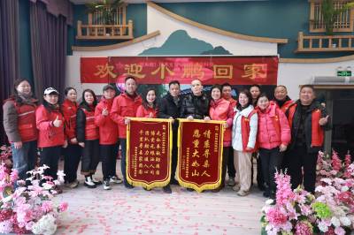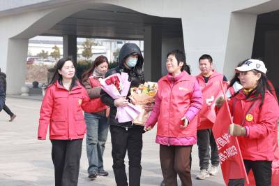 3月3日上午10许,在湖北省云梦县高铁站出站口,一群“红马甲”兴奋地拉起横幅,准备迎接“回家”的黄小鹏。0时37分,身高178公分、身穿黑色长款羽绒服、斜挎小包、佩戴口罩的黄小鹏一走出出站口,迎面看到“宝贝回家孝感志愿者欢迎黄小鹏回家”的横幅,不禁眼圈发红,省市县三地志愿者们献上鲜花,黄小鹏鞠躬表示感谢。