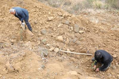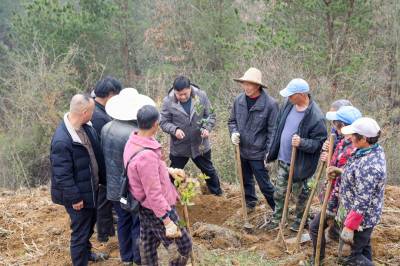 今年开年以来,溢水镇组建了7个施工队,20多台挖掘机,在何家湾、鹰岩、邵家沟、五房沟等11个村开展3000亩18万株油茶栽植工作。与此同时,以“共同缔造”理念,广泛动员群众参与油茶种植,目前已吸纳5000余名群众参与挖窝、栽树、管护工作中,来并从中获得收益。“我今儿在这块油茶基地栽油茶栽了第五天,一天能挣120元”。 溢水镇五房沟村三组村冯玉祥边栽植油茶边告诉笔者。