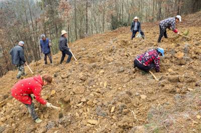 “我们窝子深度要达到60公分的窝子,但是我们并不是栽这么深,这个窝子打好了之后,我们要先回填,回填土,如果栽植过深的话,将来积水,苗子会死亡。第二个就是栽植的这个苗子,面上有一层膜,这个膜必须得撕掉,如果这个膜不撕掉的话,将来也会影响根的往外伸展,时间长了,裸露的根就会锈死,将来影响苗木的存活”。3月14日,在溢水镇五房沟村四组的罗家沟山坡,十几名村民围在溢水镇林业工作站站长施成身边,学习油茶栽植要领。听完技术人员的讲解后,随即大家继续投入到油茶苗栽植地块,挖窝、植苗、培土、浇水,现场一派忙碌景象。