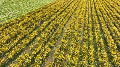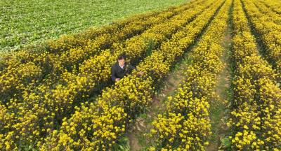 2024年3月14日,十堰市房县军店镇中村优质蔬菜产业基地,紫菜花开,静待收获紫菜种子。