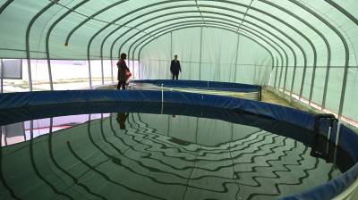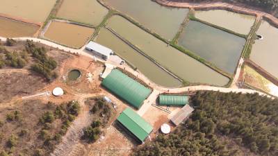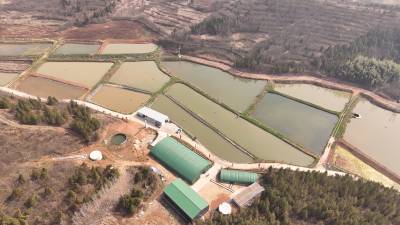 2024年3月14日无人机拍摄的湖北省十堰市郧阳区安阳镇横山村的湖北鑫运农业发展有限公司“拟尖头鲌”等家鱼育苗基地。