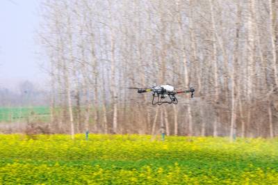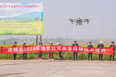 3月14日,在应城市城北办事处魏河村油菜田,来自市农业技术人员和一批飞防专业人员,指导农民对油菜进行抗灾田管指导。