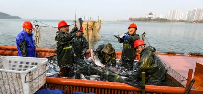 3月15日,湖北省咸宁市嘉鱼县三湖连江梅懈湖热闹非凡,嘉鱼县南江水产有限责任公司按照计划赶网捕捞,成鱼直销湖北浔味堂食品有限公司,经深加工后,销往全国各地