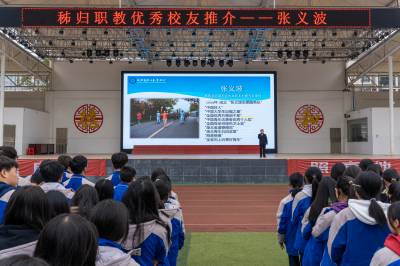 2024年3月15日上午, “在这里被唤醒——秭归县职业教育中心优秀校友推介”活动又一次隆重举行。优秀校友张义波为学弟学妹们作了题为《人生因奋斗才前行》的事迹报告。张义波是职教学子的优秀代表,曾获得“中国好人”、“中国大学生自强之星”、“全国优秀共青团干部”、“中国青年志愿者优秀个人奖”、“全国母亲河绿色卫士奖”、“湖北省道德模范”、“湖北青年五四奖章”、“荆楚楷模”“全省向上向善好青年”等二十多项荣誉称号。