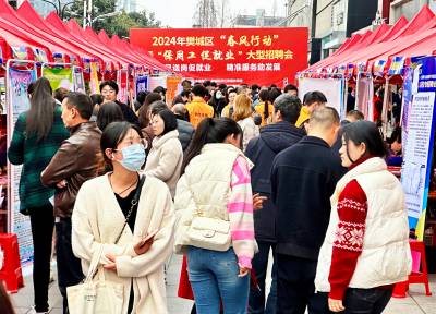 3月15日,襄阳市樊城区人力资源和社会保障局、樊城区汉江街道办事处共同举办的2024年樊城区“春风行动”暨“保用工促就业”大型招聘会在长虹路民发广场沃尔玛门前正式举行。