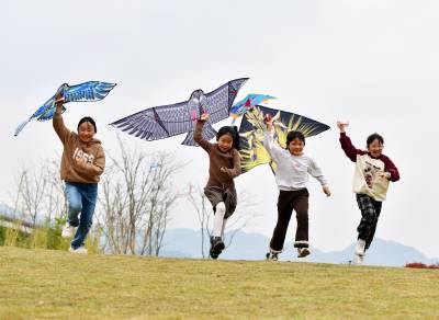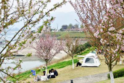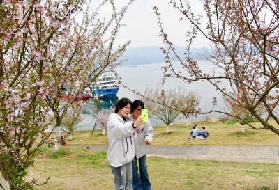 早春时节,在三峡大坝附近的秭归县茅坪镇,春花烂漫,景美如画,吸引不少游客和学生前来踏青赏春、放飞风筝,感受春天的气息。视界网王辉富 摄