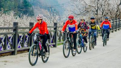 骑行在樱桃花的大道上