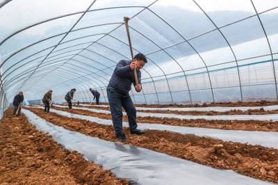 春暖时节,在三峡库区宜昌市秭归县九畹溪镇石柱村蔬菜大棚里,专业合作社社员们操控旋耕机、起垄机、覆膜机等,正在种植辣椒、西红柿、黄瓜、架豆等多种蔬菜,基地一派忙碌景象。