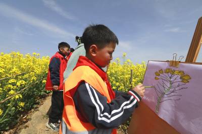 “学校将美育教学与‘相守计划’活动相融合,把教室搬进大自然,以天地为课本,以自然为老师,让孩子们在油菜花田中对话自然,慢慢体悟和感受,以美润心,以文化人,从立德树人、五育并举的角度充分培养学生能力特长。”该校负责人表示。