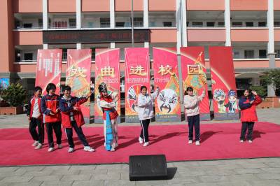 活动以经典郧剧折子戏《春草闯堂》,拉开帷幕,春草的灵秀,知府的官相,表演的幽默,让师生融入戏曲艺术欢乐的海洋中把活动推向高潮;接着生、旦、净、末、丑五大行当专业演员现场教学,为师生讲解戏曲知识、行当展示等,让学生近距离感受戏曲文化的魅力,让中华优秀传统文化滋养学生心田。