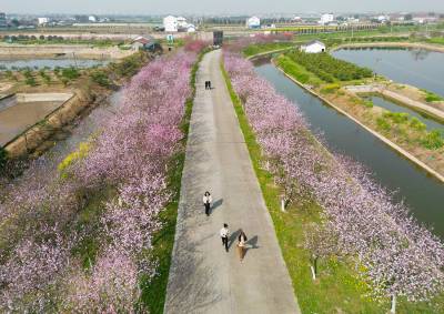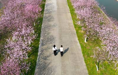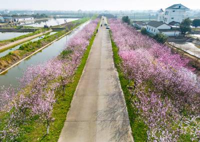 红安杏花大道:春把整街酿成了粉紫的诗