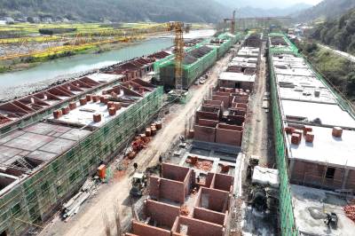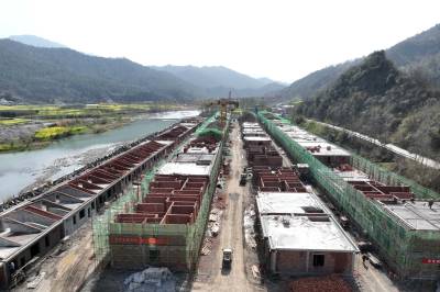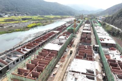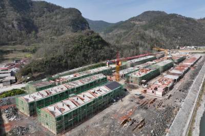 襄阳保康磷化工产业园安置房项目计划新建独户独栋砖混结构安置房96栋,并配套建设基础设施。目前,主体完工51栋,正在进行装饰装修工程,预计4月底完成主体工程和装饰装修工程,5月底完成附属工程。(视界网杨韬 旷微摄)