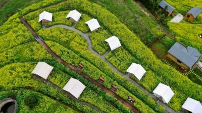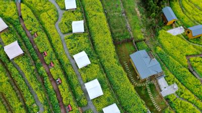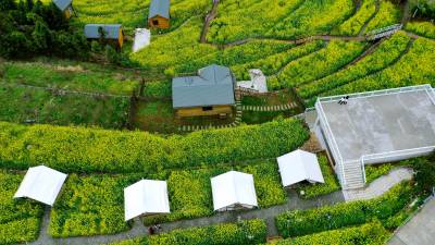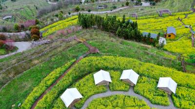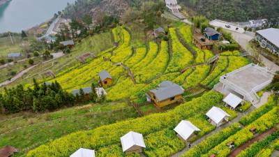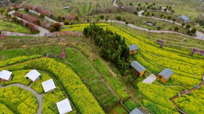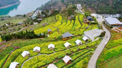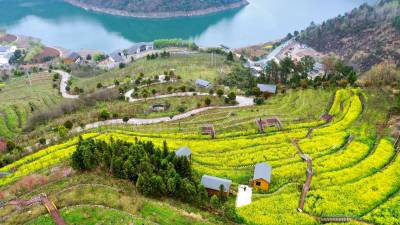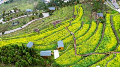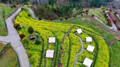 2024年3月24日,经过连续多日微风细雨的滋润和洗涤,位于湖北十堰市黄龙镇方滩乡生态园里油菜花尽情绽放,金黄色的油菜花在乡村方滩堵河流域的青山绿水间呈现出一幅春意盎然的美丽画卷。