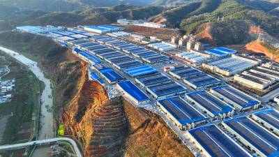 2024年3月25日,十堰市房县北城工业园屋顶光伏发电基地,绿色低碳光伏能源为企业“顶上添金”。