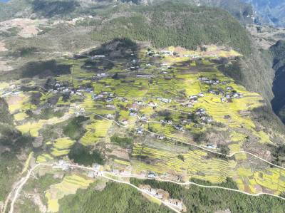 2024年3月26日,伟大爱国诗人屈原的老家秭归乐平里上面的北峰村,千亩油菜花开。近年来,秭归县不断扩大、发展粮油种植面积,高山半高山的田园与住宅交错镶嵌,春季呈现繁花似锦图案!