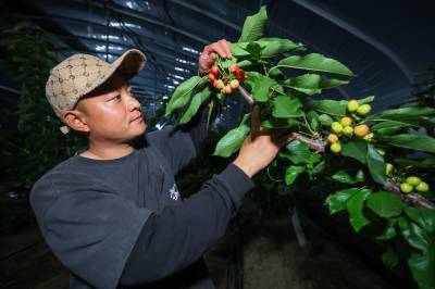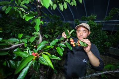 目前,襄阳市襄城区卧龙镇新建村车厘子种植基地建设智慧大棚,通过智能温控系统,实现了车厘子错峰成熟。目前,一棚繁花盛开,另一棚果实已经泛红,错峰成熟将提高果农收益。