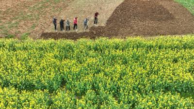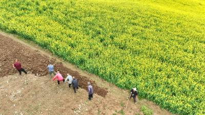 2024年3月30日,十堰市房县军店镇中心福利院“开心农场”,“月光老人”栽培的油菜花儿盛开,闲不住的老人又在人工铲地松土,准备播种蔬菜,乐在其中。