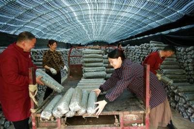 智慧香菇富农家 4月7日,竹山县双台乡政华种植专业社的社员正在加班加点去灶凉晒菌棒,准备种植优质菌种。目前,这里的香菇大棚已经发展到 150多 个,共计130亩,解决了附近30多名村民的就业问题。今年已制棒110万棒,香菇产量预计达到100万公斤,能带来600多万元的销售收入。 视界网:(陈昌荣 )
