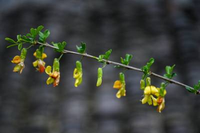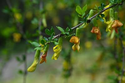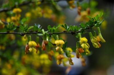 在湖北来凤革勒车镇,各个村落都有金雀花,因为花色为金黄,花形像振翅欲飞的鸟雀,所以起名“金雀花”。花苞从叶子下长出来,一连串地挂着,像一个个金铃铛,叮咚、叮咚,摇曳在风中。金雀花是不可多得的原生态美味,味道芳香可口,吃一口金雀花炒鸡蛋满满的春日阳光般的温暖。