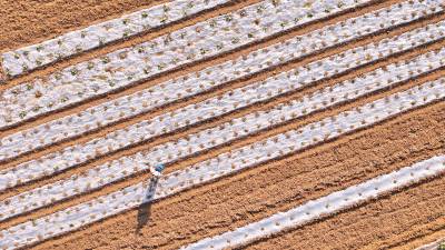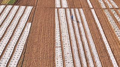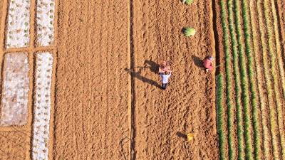 2024年4月11日是农历三月三,湖北省十堰市蔬菜大镇--郧阳区柳陂镇,高岭村、吴家沟村蔬菜基地,菜农在种植蔬菜。视界网王涛摄
