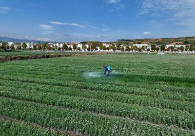 4月11日,十堰市竹山县麻家渡镇营盘河村,村民在蔬菜产业园里对香葱进行管护。为加快推动蔬菜产业向优质化、特色化、规模化、品牌化方向转变,助力乡村振兴,去年,该县支持十堰市亨运集团公司,在麻家渡镇流转土地1000余亩,建成高标准生态蔬菜产业园,实行蔬菜育苗、种植、采收、分拣、包装、储运等环节流程式规范管理。满负荷运营后,每天可为市场提供香葱15000斤、香菜3000斤,解决当地120名劳动力常年就业问题。