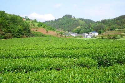 绿色扮靓幸福村 初夏,竹溪县汇湾镇幸福村山清水秀,蓝天白云。湖北省地标“梅子贡茶”茶园把山村妆扮得如诗如画。