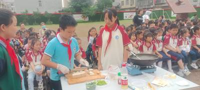 5月11日上午,谷城县城关镇城南小学举办“以劳树德、以劳增智、 以劳强体、以劳育美”为主题的生活小达人评比大赛。 瞧一双双小小的手,把食材烹饪成有模有样的,供评委及师生品尝,最终五(1)班的烤五花肉,六(2)班的酸辣白菜,三(3)班的煎豆腐荣获一等奖……。 活动给学生带来展示才艺的空间,让“双减”落地。(蔡江波 程艳艳)