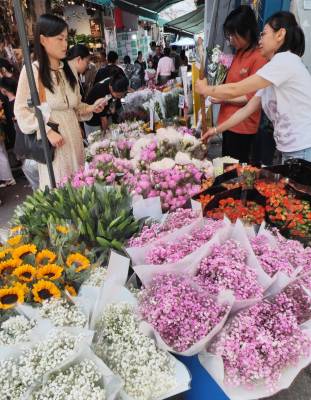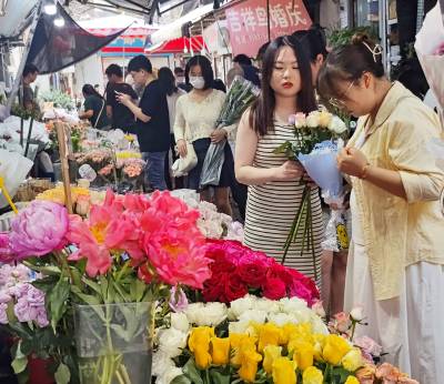 今年的5月12日国际护士节和母亲节,相约在这一天喜相逢,随着“5·20”我爱你也临近了,同时拉动了武汉花卉市场的消费热度。5月12日,在江汉区新华街道循礼门鲜花市场芍药、康乃馨、玫瑰等成了热销产品。往年的康乃馨独霸市场的情形难觅了,今年被称为“五月花神”进口芍药一跃成为时令鲜花中的新宠,受到了广大消费者的青睐。