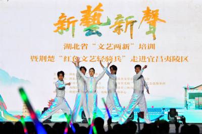 2024年5月16日晚,湖北省荆楚红色文艺轻骑兵“文艺两新”专题惠民演出在宜昌市夷陵区三峡白马营艺术区开演,来自全省各地的艺术家和演员现场展示激光秀和“文艺两新”成果,表演相声《说说唱唱中国梦》、音乐快板《“文艺两新”谱新篇》、情景演绎《喜欢》、光影魔术秀《相信美好》、杂技《冰上芭蕾》、土家群舞《连厢闹春》、戏曲《梨园新说唱》、诗朗诵《以人民的名义》、歌舞《崭新的时代》《山水夷陵》《屈原颂》《楚韵》《我们又出发》等10多个“新艺新声”文艺节目,为当地群众送上了一场精彩的文化盛宴。