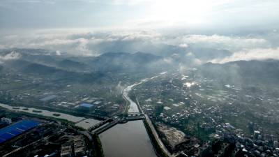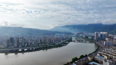 2024年5月30日,十堰市房县马栏河城区中心段山舞银色,水清岸绿,一幅江南水乡美景尽收眼底。