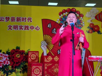 6月8日是“文化和自然遗产日”。主题是:保护传承非遗,赓续历史文脉,谱写时代华章。国家级非遗代表性传承人、著名曲艺大师、湖北鼓王张明智携弟子来到云梦县,参加云梦县“文化和自然遗产日”“非遗宣传月”活动。张明智与弟子共同带来湖北大鼓,罗爱国的《丰收场上》,徐宁的《自作自受》,魏志勇的《三女婿拜寿》,陈加平的《大老王剃头》,张雷的《如此媳妇》等节目色彩纷呈。张明智老师根据《亲生的儿子老洞房》改编的《破镜重圆》湖北大鼓小品,作为压轴戏,传统与现代有机的结合,诙谐幽默风趣,生活气息浓郁,将演出推向高潮,赢得观众经久不息的喝彩。期间,云梦县实验小学的学生集体表演了湖北大鼓;云梦县楚剧团青年演员黄炎强、陈玘上演了《川剧变脸》高潮迭起;武汉杂技团国家一级演员、西班牙菲格雷斯国际马戏节金奖获得者吴松涛带来魔术表演《年年有余》,用两米长的鱼竿,从人群中钓出一条大活鱼,将现场气氛推向高潮,赢得观众的阵阵掌声。