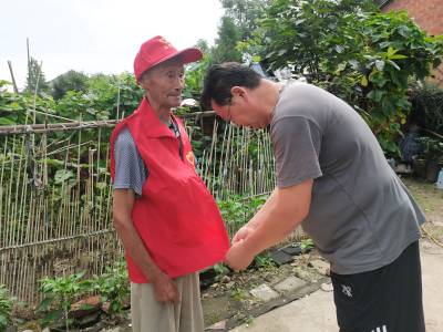 7月1日,分水镇友好村驻村干部和村“两委”干部到老党员刘泽安家走访慰问,坐在门前长凳上听他讲着战斗故事。