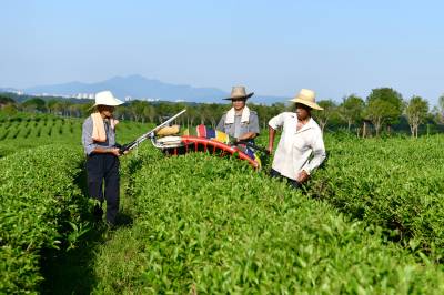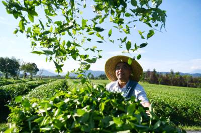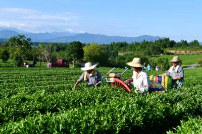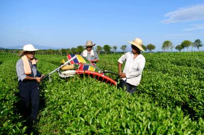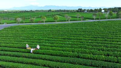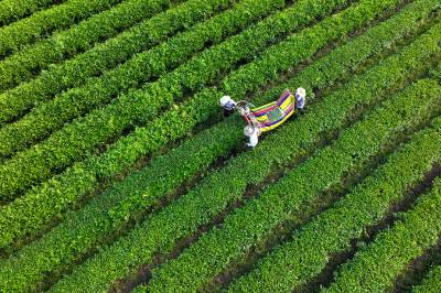 2024年7月6日,在湖北省咸宁市通城县福人九井峰茶园,茶农们正在用机械采收夏茶。 近年来,通城县持续推进茶产业高质量发展,积极引导茶企和茶农参与夏茶开发生产,延长茶叶产业链,提高种植效益,拓宽群众增收路子,让茶山真正成为群众增收致富的“金山银山”,推动绿色发展持续释放生态“红利”。同时,当地大力推广夏茶机械化采收,节约人工成本,降低了劳动强度,加快采收效率,提高茶农经济效益,促进茶农增收。