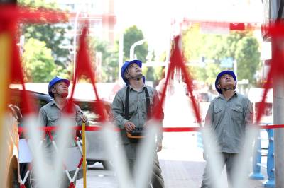 湖北荆门:38℃,“面具侠”带电作业“战高温”