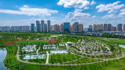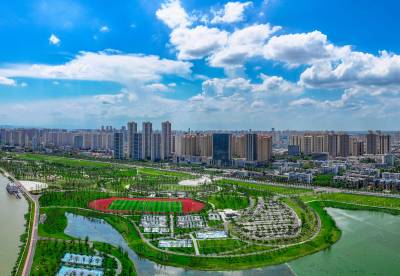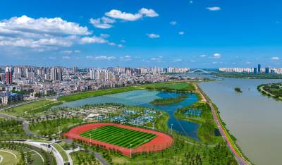8月3日,汉江边的襄阳市西湾公园夏景如画, 襄阳市西湾公园所在的位置曾是汉江荒滩。近年来,当地全面践行人民城市理念,对城区河流岸线进行环境整治和生态修复,通过“整滩、加堤、建路、配套”等方式,建起了襄州区西湾公园,满足市民休闲、健身需求,补齐防洪排涝和生态建设短板。