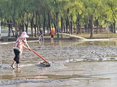 连日来,长江汉口段洪水逐渐退去,汉口江滩被淹的地方也逐渐露出来。为8月8日武汉第49届渡江节顺利进行,汉口江滩组织专班专人对三阳路广场及时进行了冲洗保洁等工作,确保8日渡江大军安全到达胜利的彼岸。