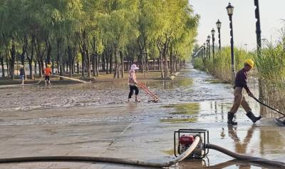 首页 > 社会 > 汉口江滩洪水渐退 江滩及时清淤保洁