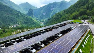 三峡大道西陵二路互通立交上车辆川流不息